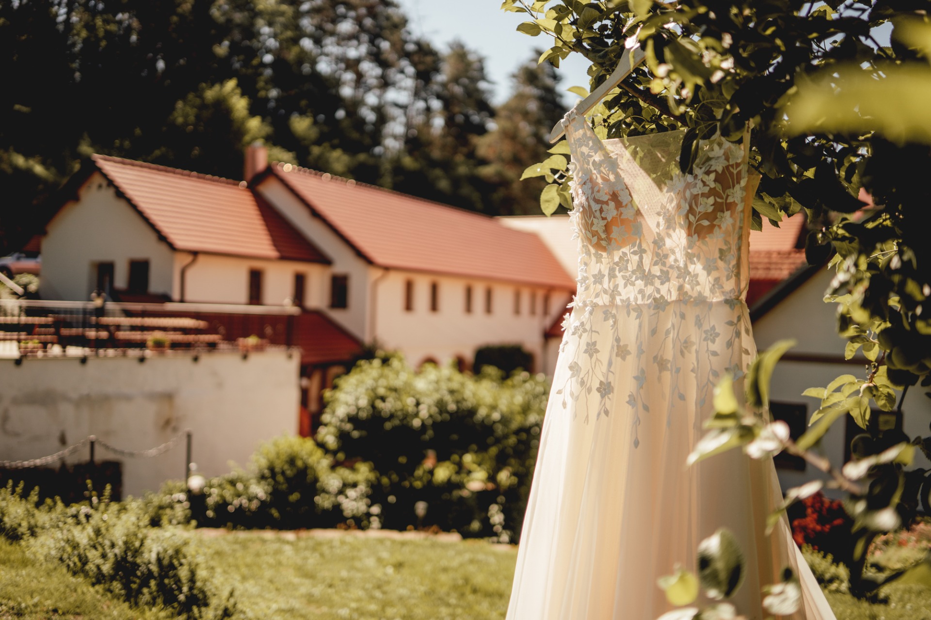 „Uzavřený areál s ubytováním pro vaše nejbližší, romantická stodola a zahrada jako stvořená pro obřad. To vše v srdci přírody, jen pro vás.“