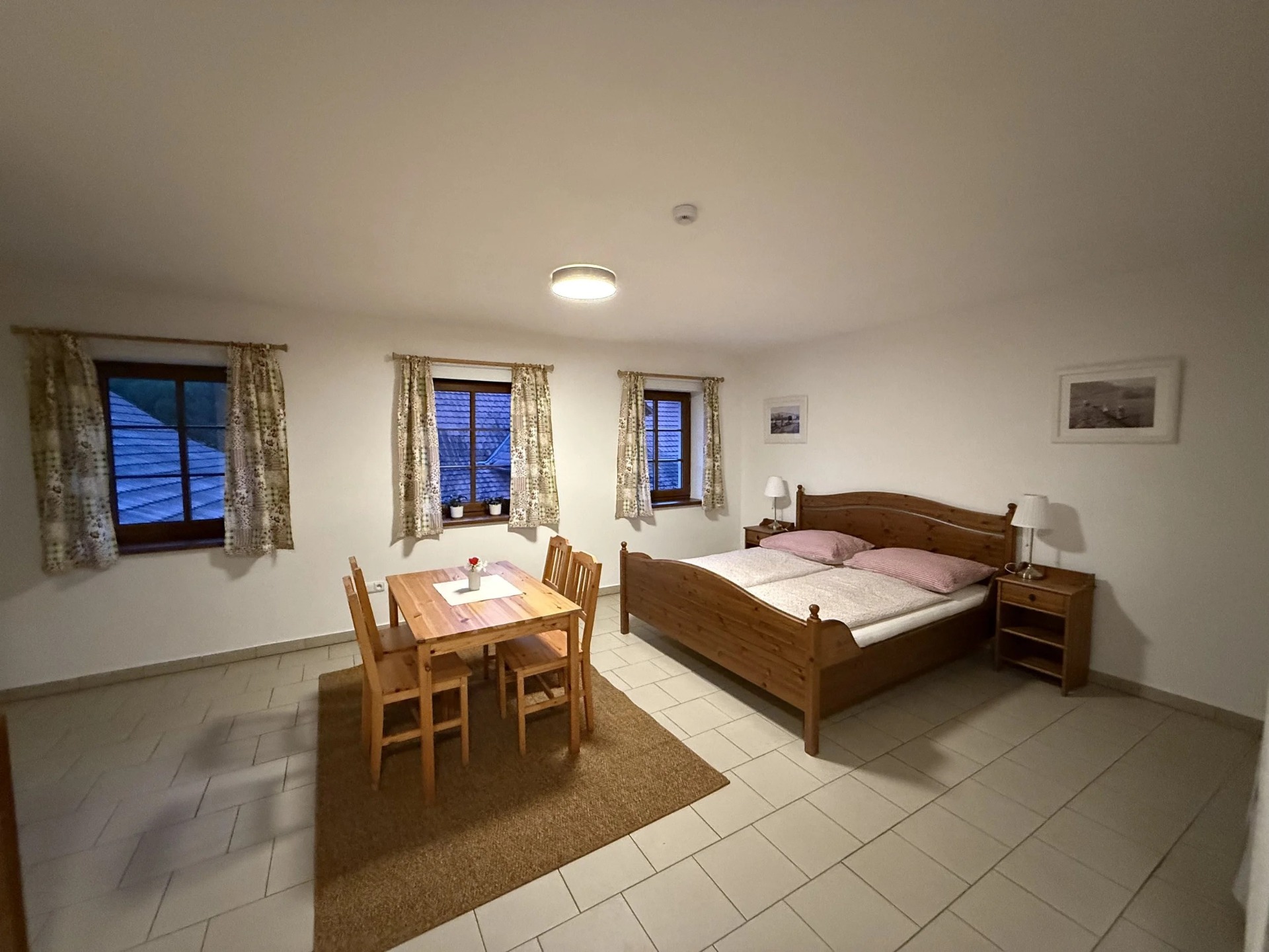 Prostorný apartmán pro 6 osob, kde se nachází dvoulůžková postel a 2 palandy. Je zde vybavený kuchyňský kout s posezením a koupelna se sprchovým koutem.